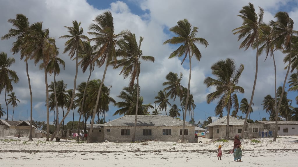 Das sollte man wissen, bevor man sich als unbedarfter Backpacker hierher aufmacht. Weite Teile der Insel, die übrigens nicht mal halb so groß wie Mallorca ist, sind fest in der Hand von italienischen Pauschaltouristen, die in großen All-inclusive-Anlagen Rambazamba machen. Sehr beschaulich präsentieren sich jedoch die Strände im Südosten der Insel. Für eine Woche quartieren wir uns dort in der → Twisted Palms Lodge nahe dem bescheidenen Dorf Bwejuu ein.