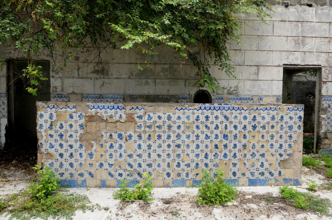 Nur wenige Schritte vom Clube Naval entfernt stoßen wir hinter der traurigen Uferpromenade auf die Ruine eines Gebäudes, das ein Hotel mit Bar gewesen sein muss. Der Thekenbereich mit den lädierten Azulejos ist noch immer auf seine Art einnehmend: